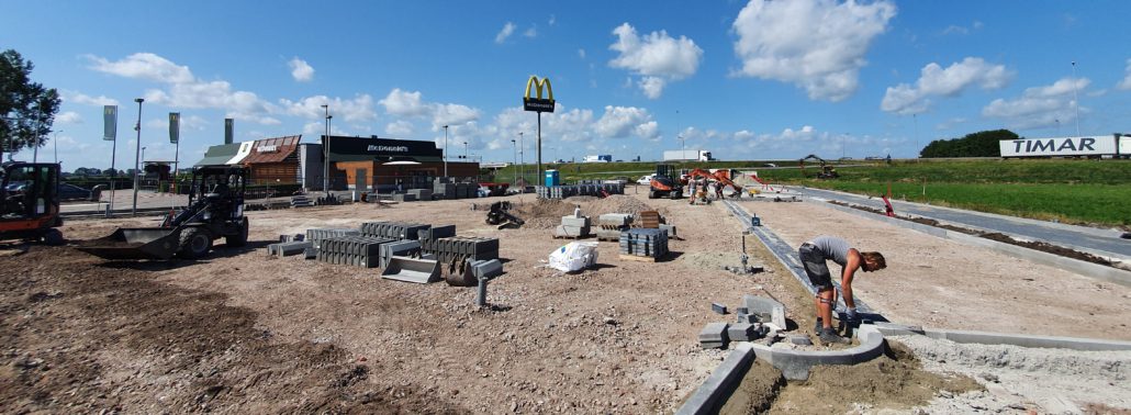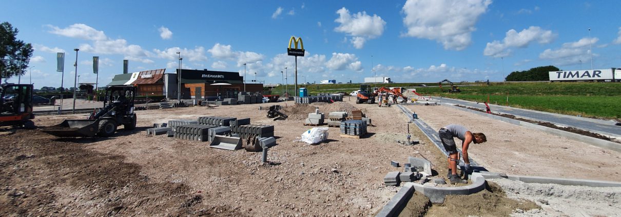 Vorige week zijn wij gestart met de uitbreiding van het parkeerterrein van McDonald’s Meerkerk. De werkzaamheden bestaan onder andere uit het aanbrengen van nieuw straatwerk om meer parkeercapaciteit te creëren.