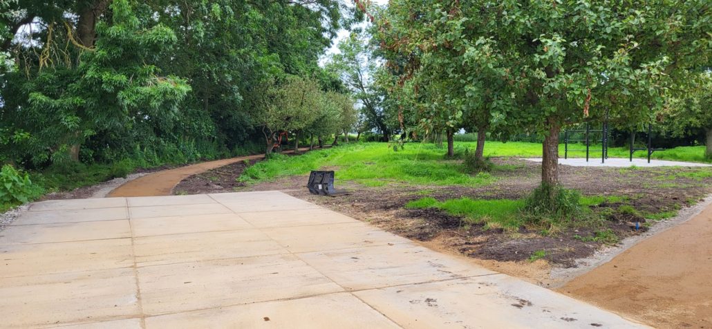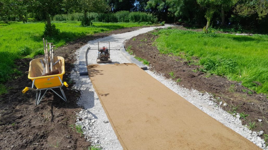 Het terrein is gedeeltelijk geëgaliseerd om een stabiele en strakke basis te creëren, zonder afbreuk te doen aan het natuurlijke reliëf. Langs alle paden is een inheems bloemenmengsel ingezaaid. In de komende jaren zal dit uitgroeien tot kleurrijke, biodiverse borders die bijdragen aan de aantrekkelijkheid én ecologische waarde van het gebied.